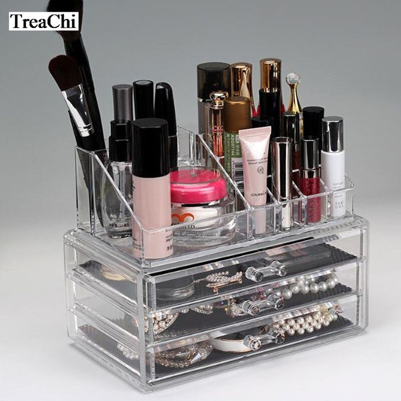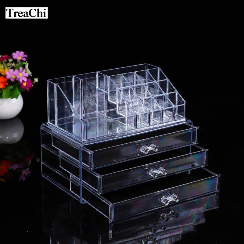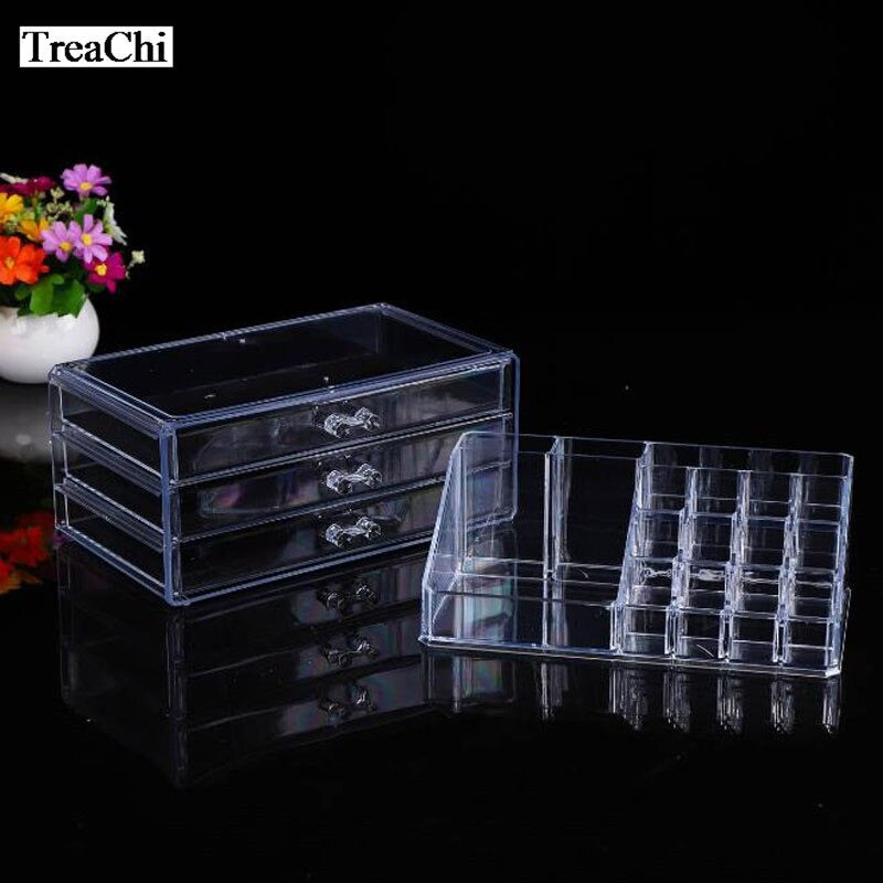 Boîte de tri de bijoux de bureau, tiroir Transparent, boîte de rangement en plastique anti-poussière pour rouge à lèvres, cosmétiques et soins de la peau.