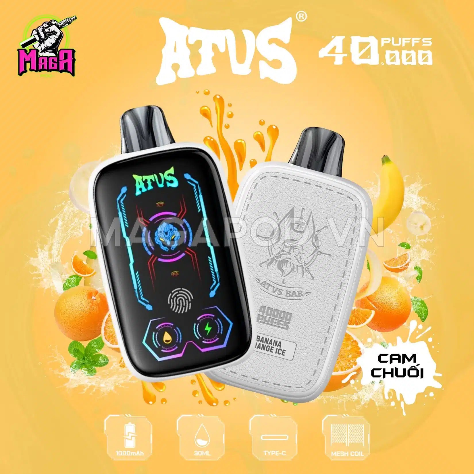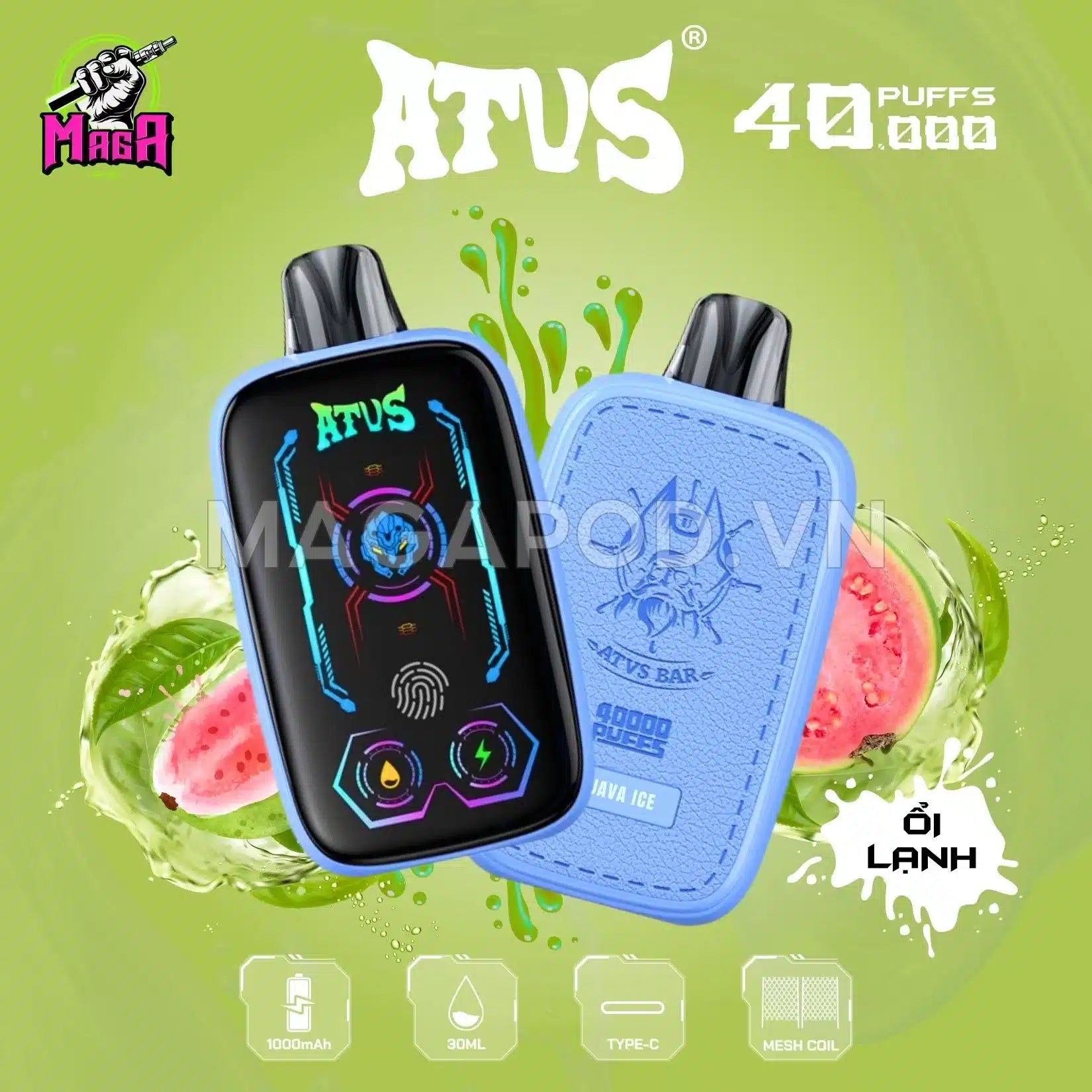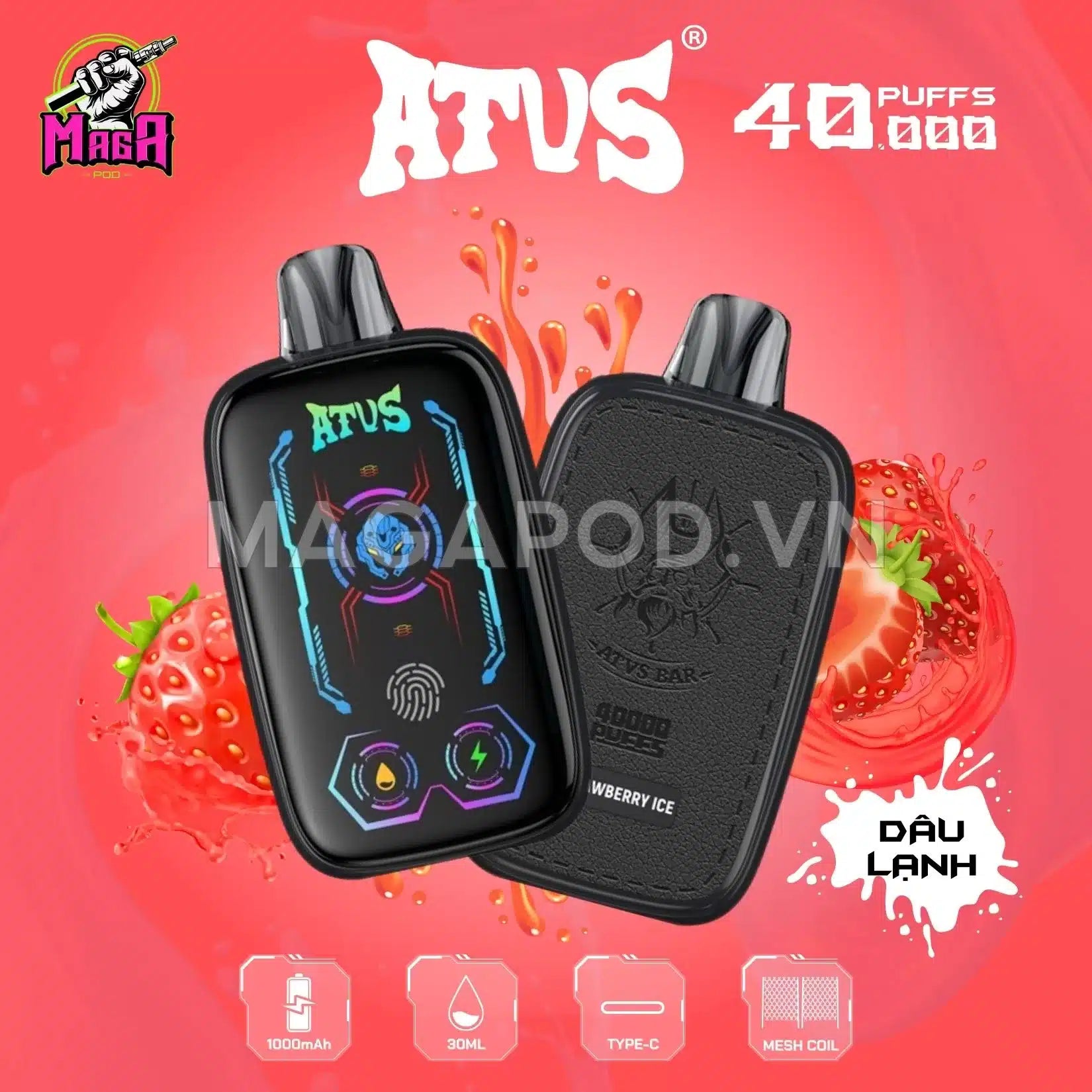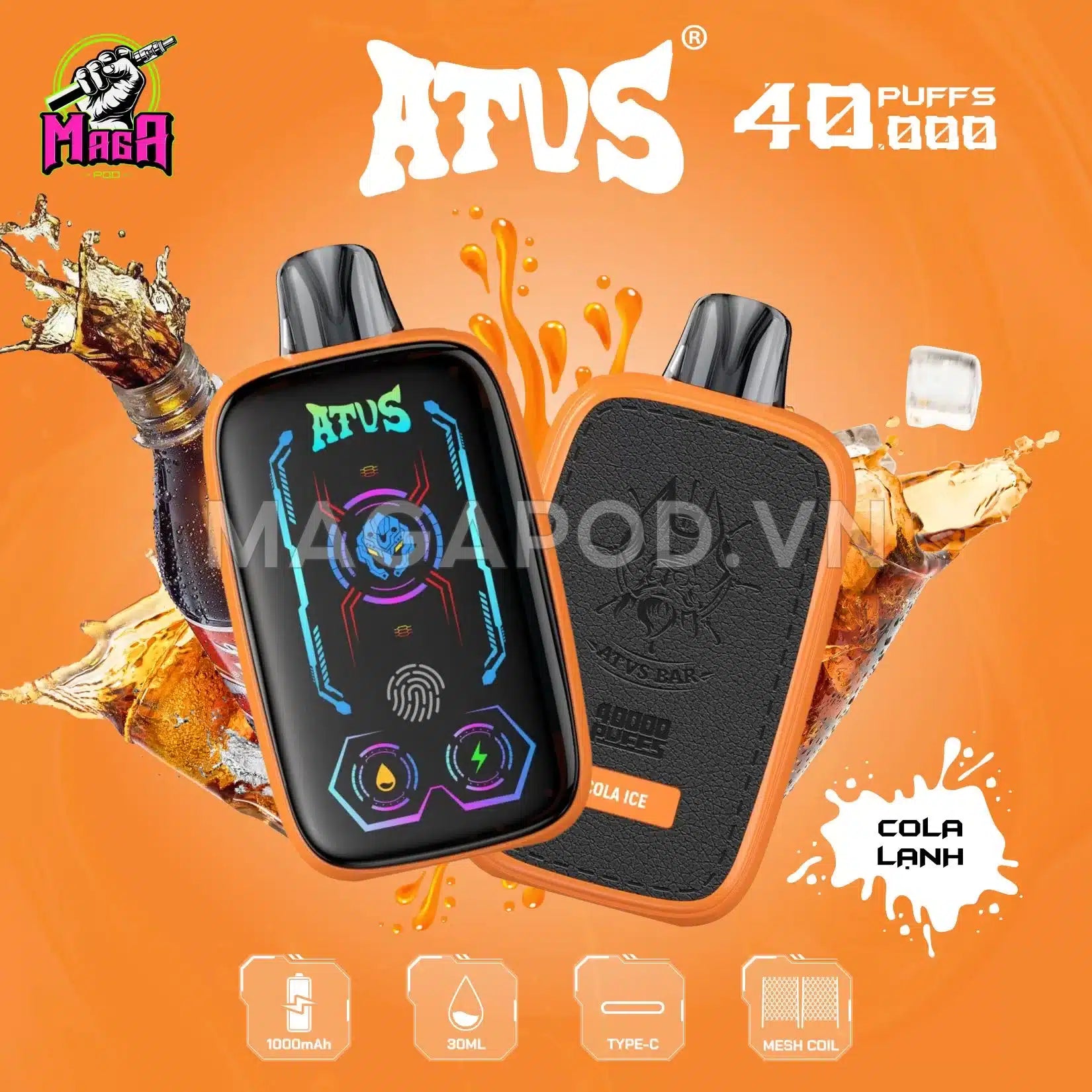 • L'ATVS 40K est l'une des premières gammes de dosettes jetables à intégrer un grand écran tactile , vous permettant de visualiser et de contrôler les paramètres de base tels que la quantité d'huile essentielle, la capacité restante de la batterie et le mode de l'appareil utilisé.